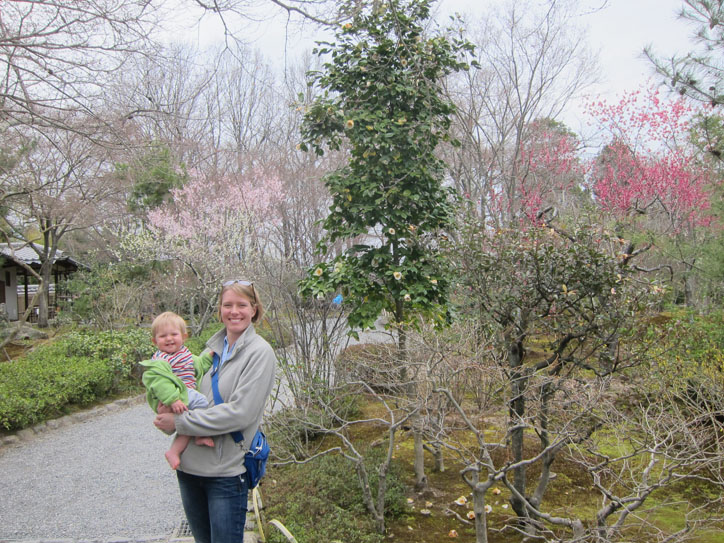 I don't know what they see in that bridge but other than that its lights are powered by the little waterfall underneath I don't see anything note-worthy about this thing. ANYway… We quickly moved on to the first temple and enjoyed some early cherry tree blossoms poking their heads out.