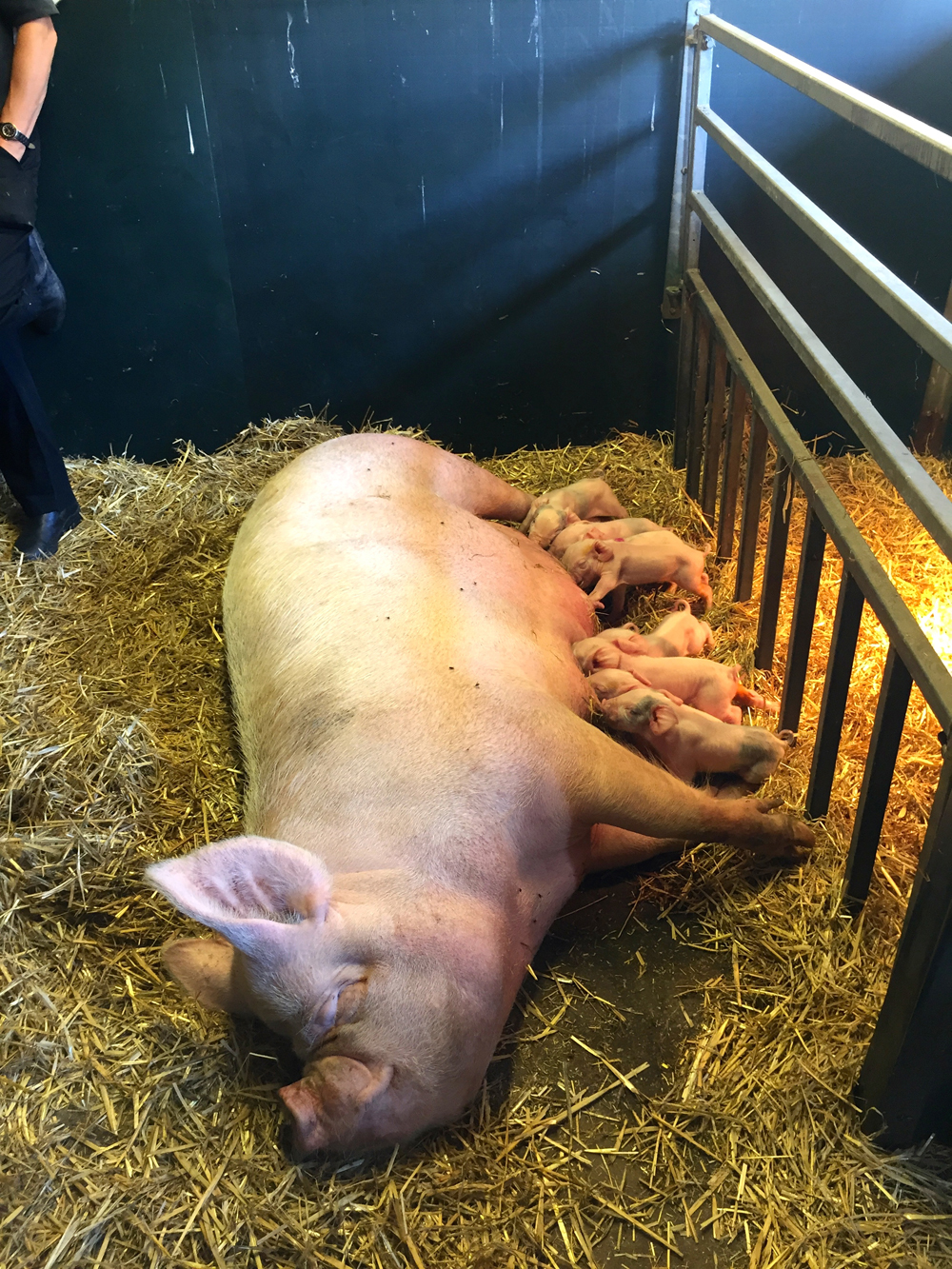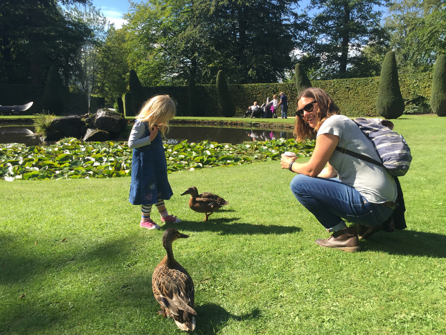 Cute little country house. Only about 48 rooms too many for our needs.Now THAT'S a library.The duke of Devonshire obviously never had to worry about folding his buggy to fit onto a bus.The stairway (which was/is obviously for servants' and tourists' use) was decorated with empty frames. Not sure if they were afraid to put pictures up in that area or just had too many frames lying around.BabyPaw on the war path. Running a fever, diaper rash from hell and teething. Do not approach under any circumstances. Will bite.Some of the modern artwork was a bit, hm, suggestive.The ducks obviously knew that tourists = food. They even stuck their beaks into the bottom of the stroller just to check if we were hiding any sandwiches or croissants there.This is her "ecstatic" face. (Seriously though, she loved it.)These piglets had been born just that morning, a few hours before we saw them. Mom was snoring like a trucker, obviously exhausted, while the little ones were clambering and squealing, trying to get to the best teat.