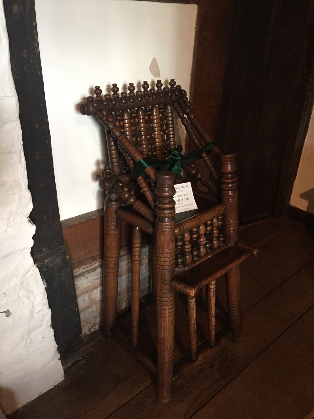 Alright everyone, point to the camera! (Ahem, EVERYONE BabyPaw...)Sure, NOW he's pointing...Apparently these trundle beds is what they would have had. Parents sleep on top, kids under five get a little 'trundle' pulled out on the side where they sleep. In lieu of a mattress they had ropes and sacks with wool and horsehair and interestingly enough, that's apparently where the expression "Good night, sleep tight" comes from since the ropes had to be tightened every few days to remain comfortable. No word on "don't let the bedbugs bite".Eat your heart out IKEA. Now that's a baby chair worth having in your dining room!William sure did have a way with words...A bit of interpretive dance for the swans.The church where the bard is buried. We didn't cough up the money to see it, instead took a lovely stroll through the cemetery around it and sat by the river.It really is too pretty.Come on, put your back into it people! This boat's not gonna row itself!The other big attraction in the area, besides Stratford, is Warwick Castle which is very nicely preserved but has also been purchased by the Tussaud group (of Madame Tussaud fame) and since turned into a mediaeval Disneyland. Vastly overpriced but we still had an enjoyable day. And SmallPaw and I got some good exercise in climbing all those stairs!