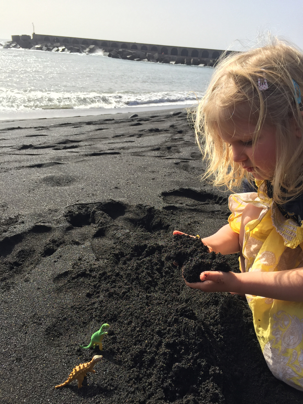 We also checked out the beach and coast; all black, as you might imagine from that ginormous volcano crater in the middle of the island...