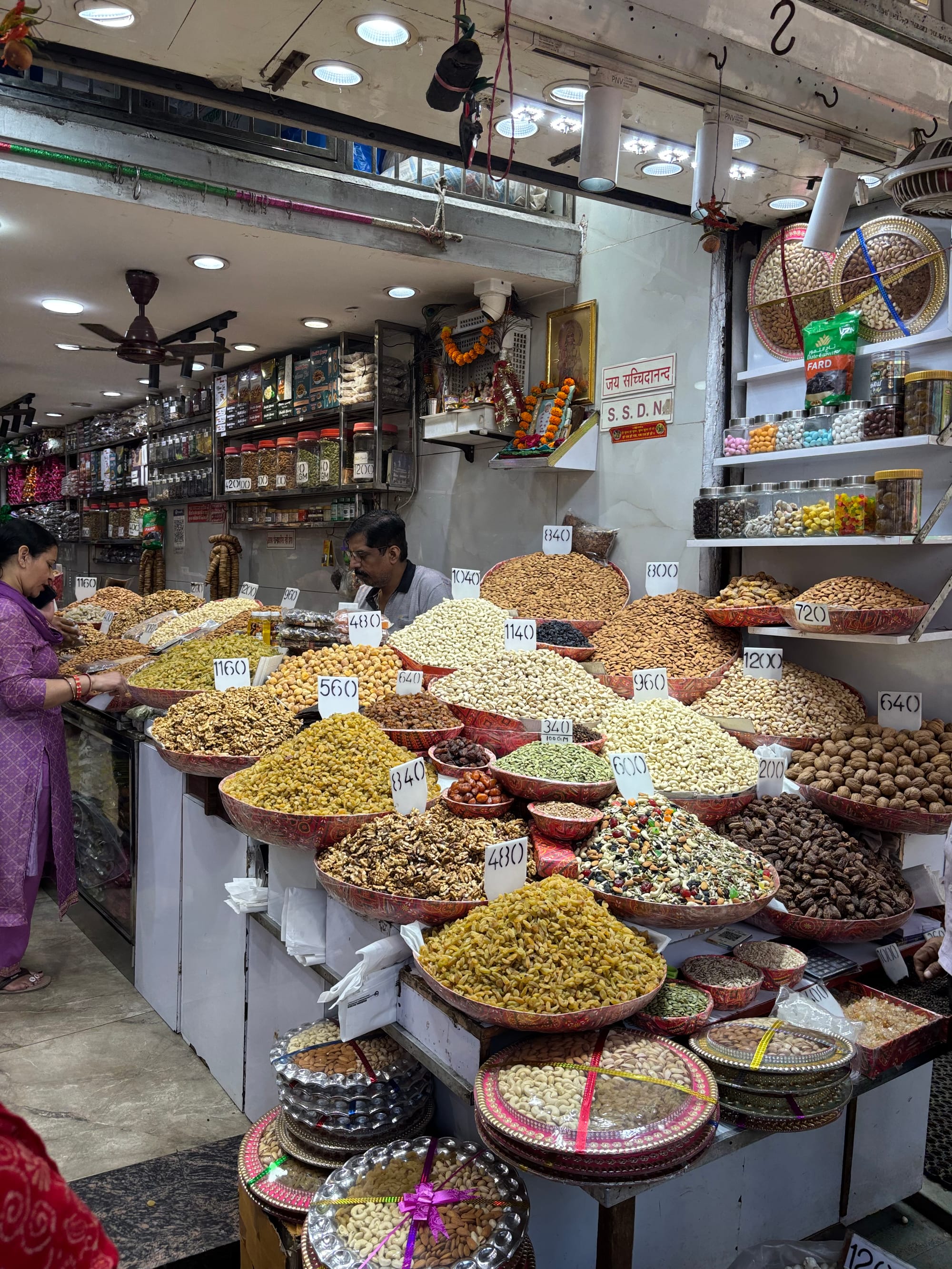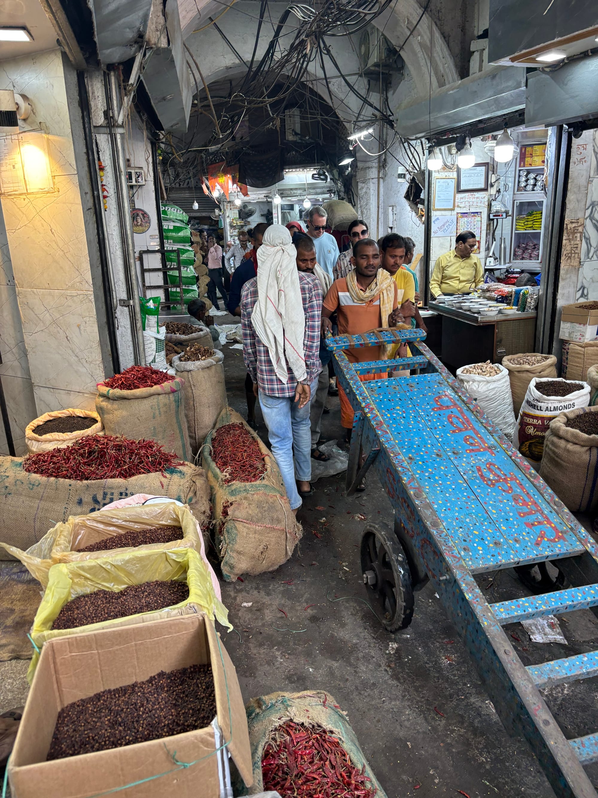 After the mosque, our guide Shruti organized a rickshaw ride to the spice market along Old Delhi’s main thoroughfare. We weren’t allowed into the smaller alleys branching off the sides because everything is being setup for Diwali already and there’s barely enough room as it is. But maybe that was a good thing actually. The squeeze was tight enough on the big road!