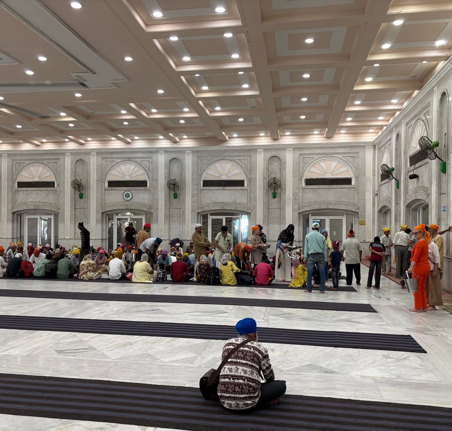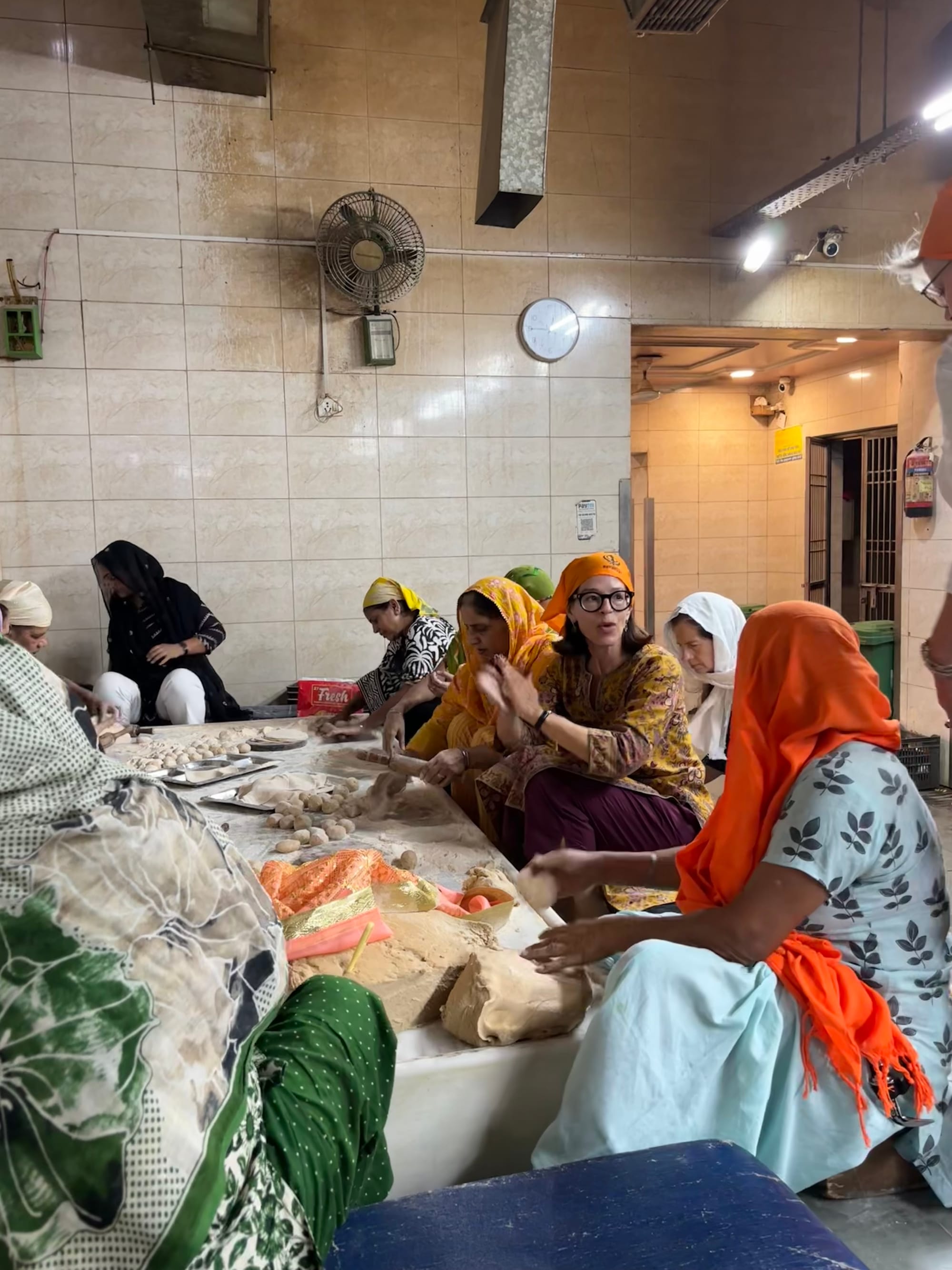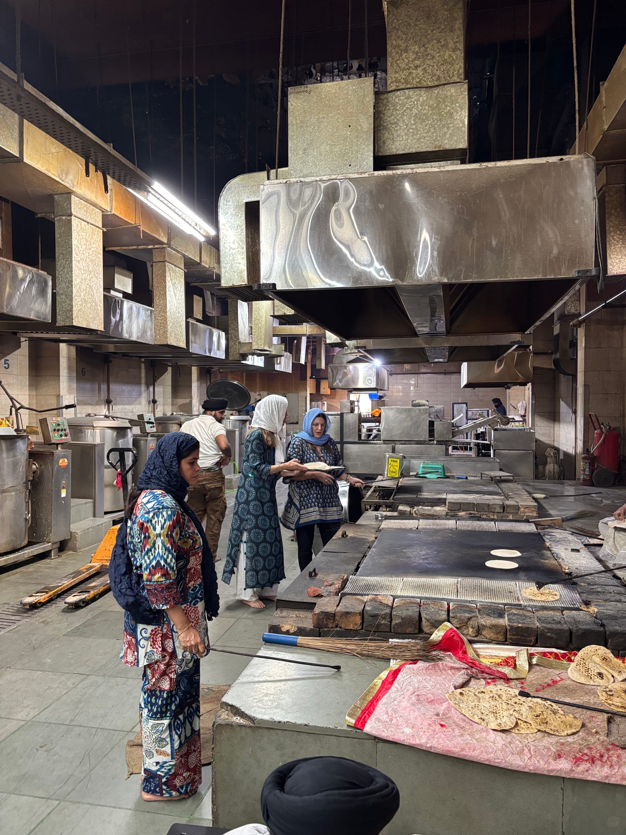 Last, but not least, we went to the Gurdwara Bangla Sahib, a major Sikh temple in New Delhi, to do seva. This means literally “selfless service” or volunteer work. In our case we went into the giant kitchen and helped to prepare and serve food. Caring for others is a major tenet of Sikhism which means anyone can come to the temple for food or even sleeping And they will be received and taken care of. (Bare bones, obviously, but still...)
