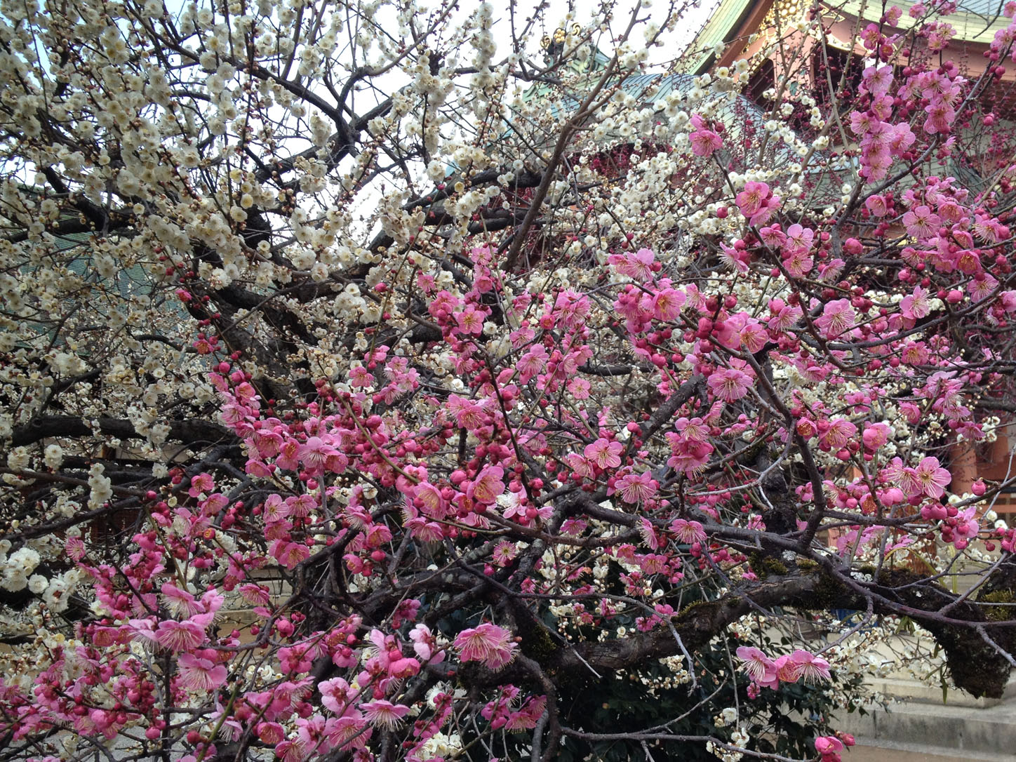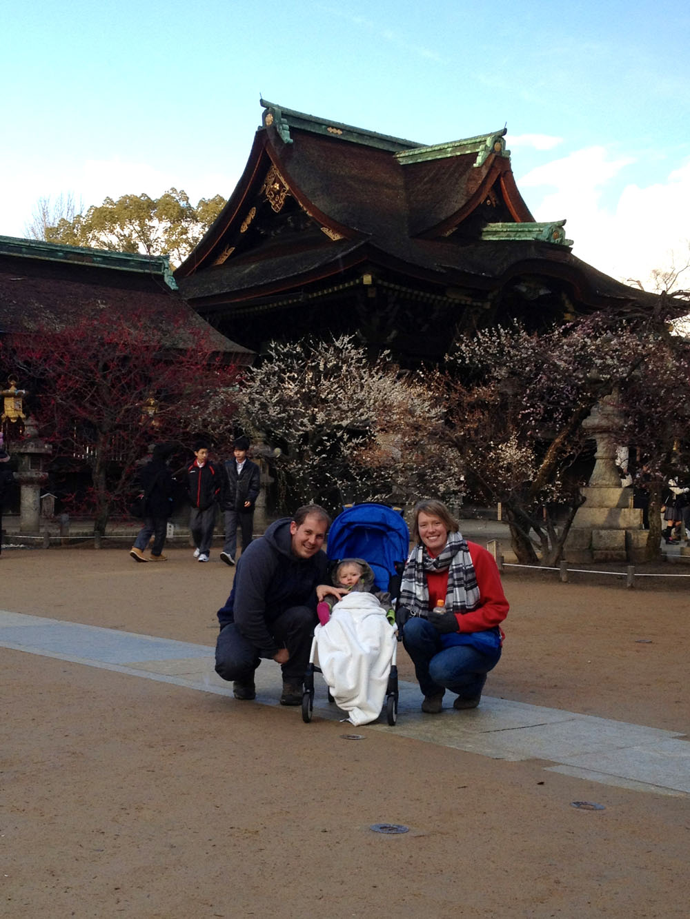 When the clouds opened up in the afternoon we quickly packed our things and loaded Small Paw into her super stroller to make our way to the Kitano Tenmangu Shrine since the grounds of the shrine are filled with plum trees which are in bloom right now.