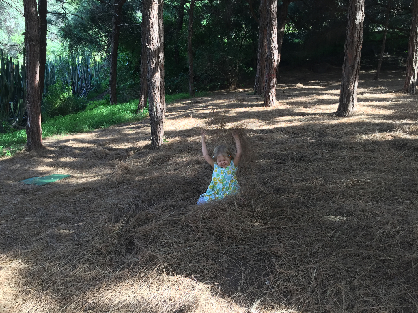 But today we did my favorite thing yet: we went to the botanical garden. Not only were there ponds with frogs and ducks, there were tons of PINE NEEDLES! If you've never played in a bed of pine needles you don't know what you're missing. Really, go out and find one right now and tell me if you don't agree. Actually, don't tell me because I won't believe you.