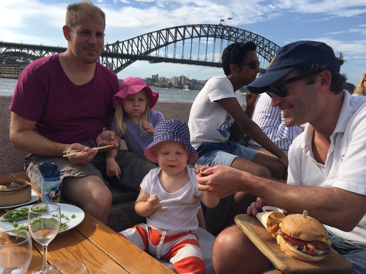 On the sunny side.Uncle Curt letting the cobwebs of jet lag blow away.Total show offs.Little man on Manly Beach.Tad windy..Can we keep it?? PLEASE!!!The sous-chefs are ready for pancakes.Ready for the big eve!A bit of peace and quiet on Christmas day at Waverley Cemetery.Christmas day at the beach. With the rest of Sydney, it seemed.A gingerbread piñata. Them crazy Aussies...Mischief managed.Riding the train like a boss.Sharks, rays, dugongs and these two.Finally made it onto a ferris wheel. Had been promised since Sapporo... Oops!Look what we found. Again.Two girly girls at the opera house.Uncle Curt 10 seconds before he had a heart attack when BabyPaw tried to launch himself into the water.Waiter, another bottle!I really want that burger but for now, I'll take a French fry.Don't want to overload everyone but it really is beautiful.Aaaand they're OFF! Sydney Hobart race on Boxing Day.As uncle Curt said "Deadly animal and croc."The awesome foursome.
