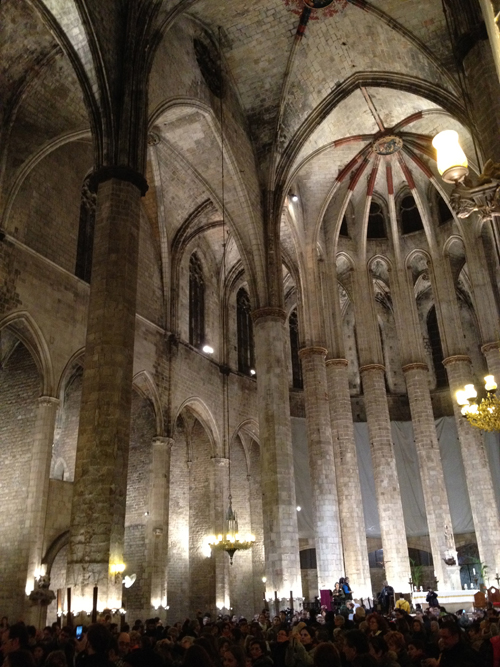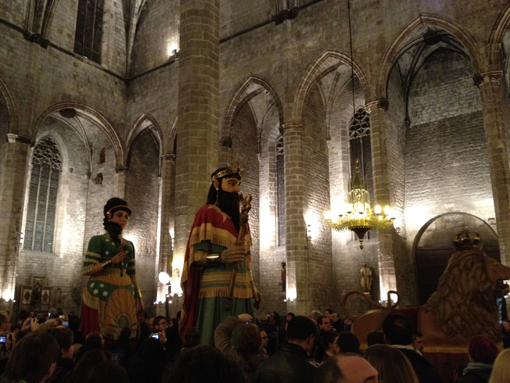 At night we happened upon the dance of the giants in front of the Catredal del Mar in the Born. The "gegants" had come out for the fiesta de la Santa Eulalia which I've never heard of but maybe that's because we didn't spend much time in the Gotico when we lived here...