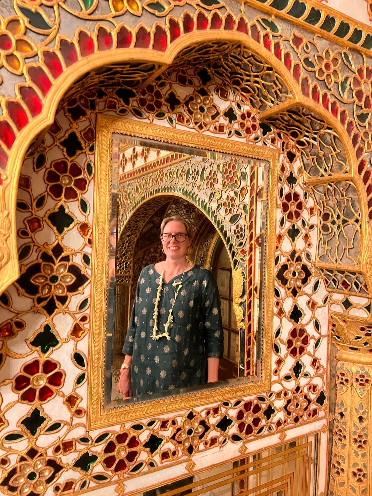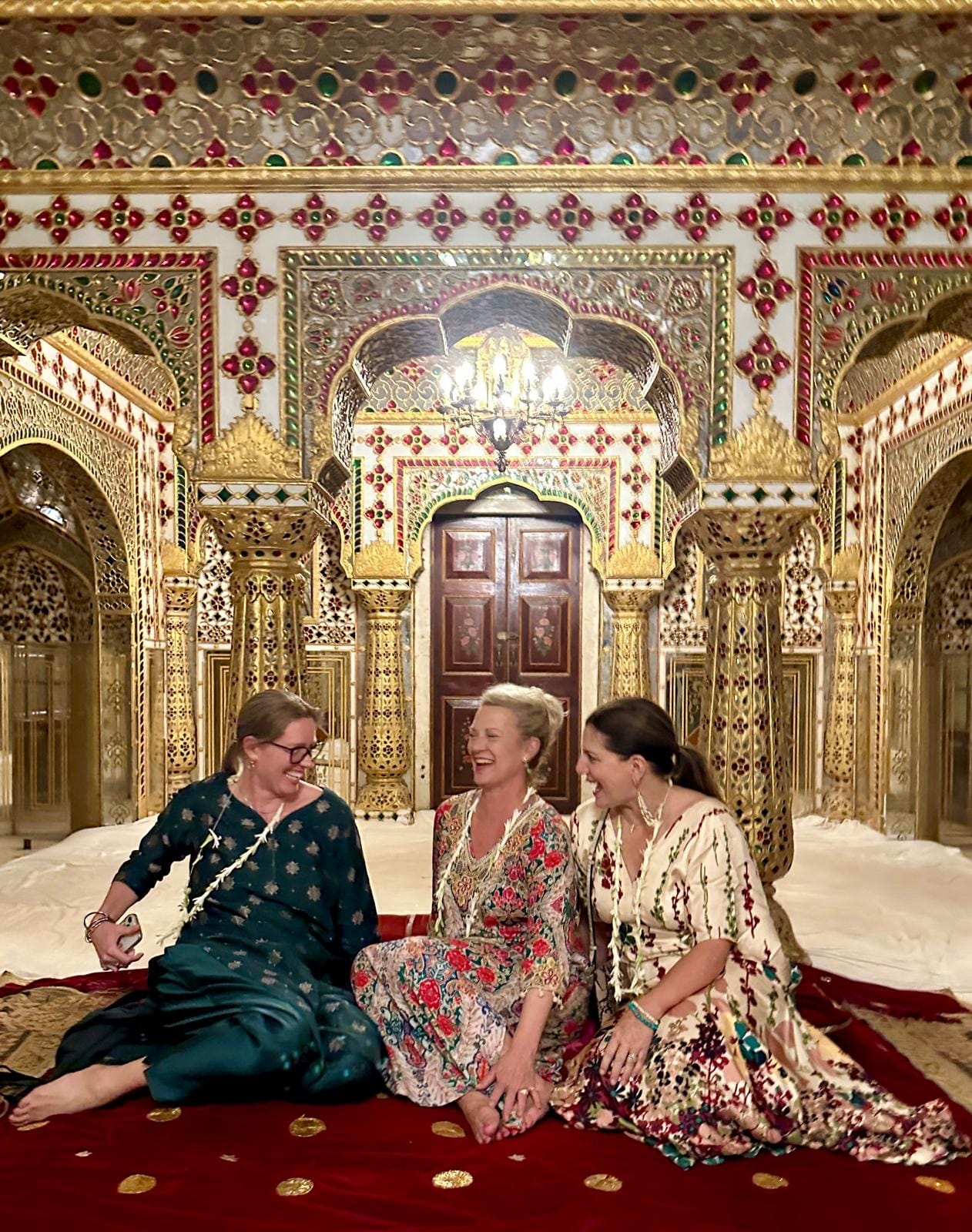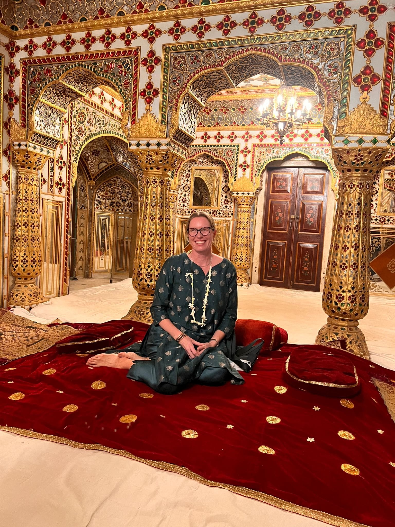 Next we were led into the private area of the palace where the current maharaja and his family live. With flower garlands and bubbly we got to enjoy the view of their private gardens and then ascended to the higher floors for some more maharani cosplay.