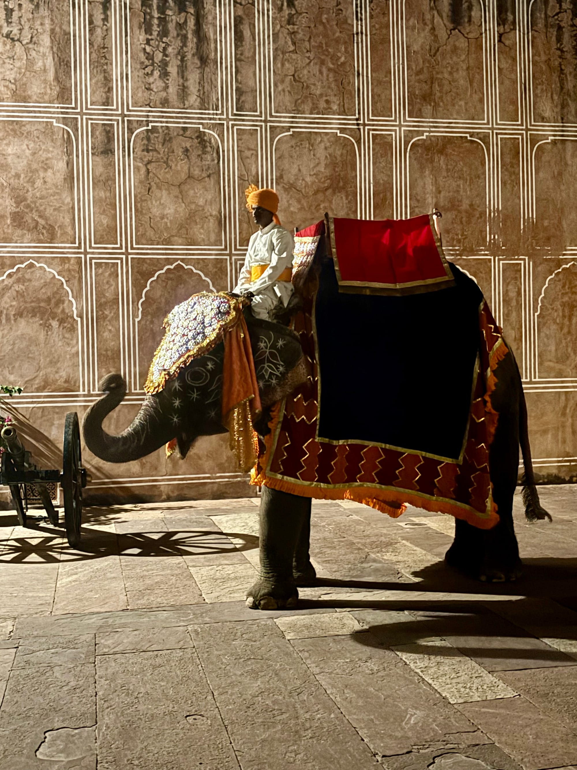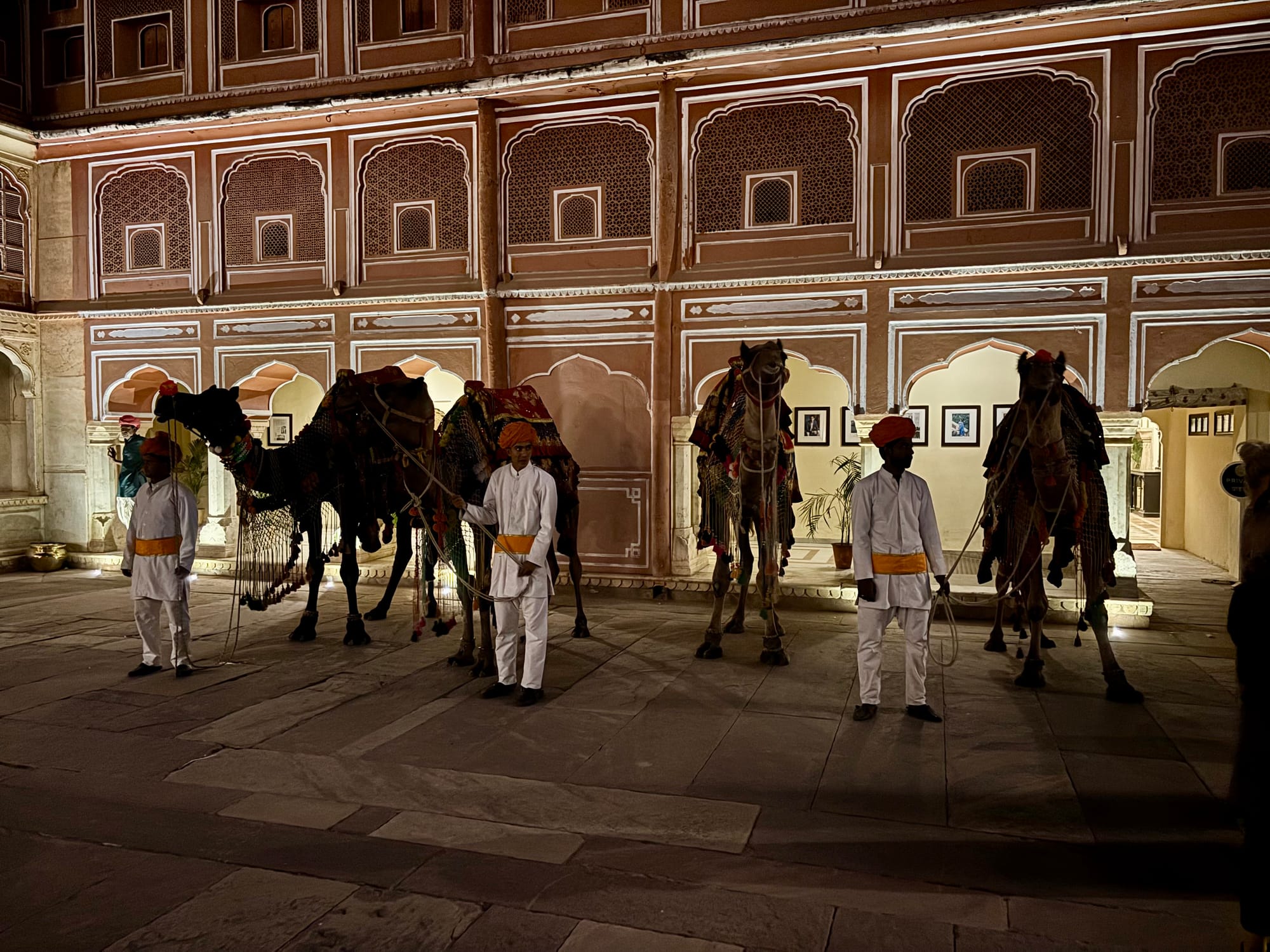 Well, we arrived at the palace and were greeted by a host of musicians and palace guards in full livery riding horses, camels and (I kid you not) a full-size elephant. My first thought when we got off the bus was actually that they were waiting for someone else.