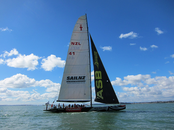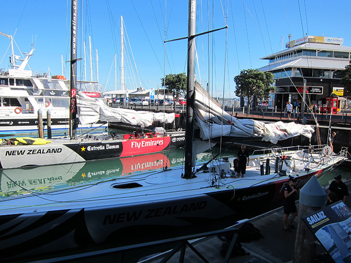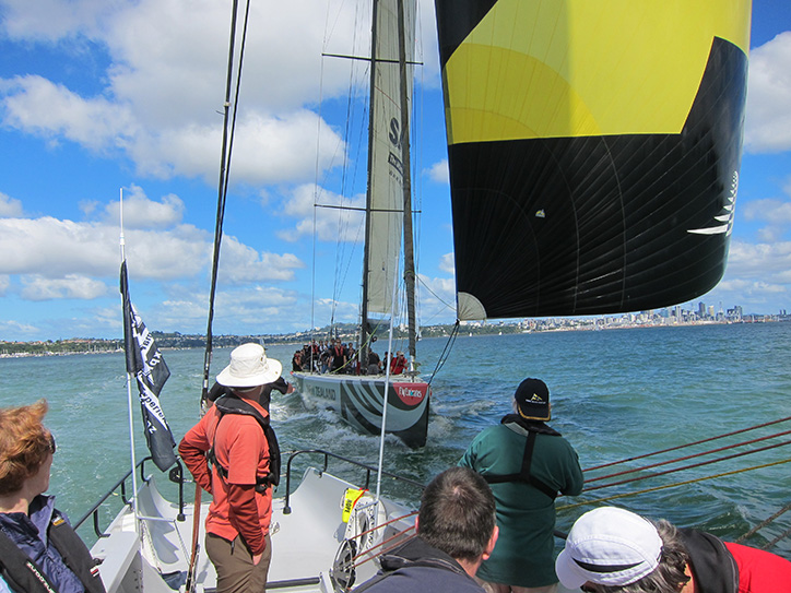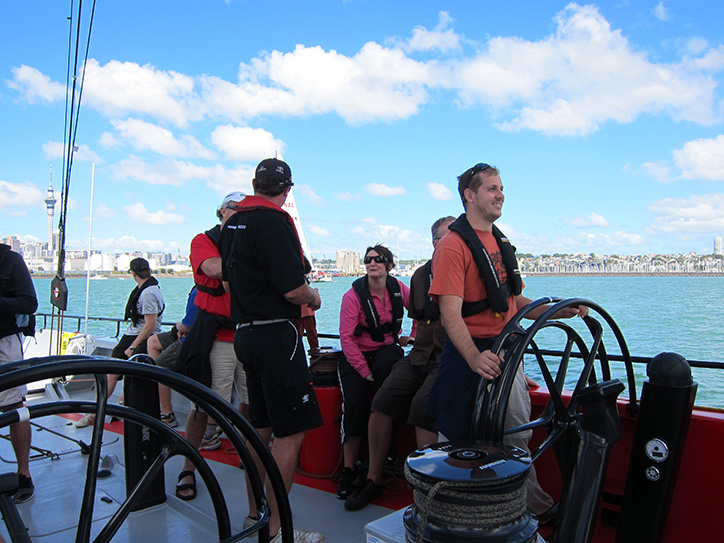 Last time we visited New Zealand we got to see the America's cup boats being towed out of the harbor prior to racing in the final. We where in Auckland when the mast broke on Team New Zealand's boat dashing any hope of retaining the cup. Luckily for us this time around an enterprising New Zealander bought the old boats and duplicates the original races but with paying tourists on board. So we signed up for a Saturday race.