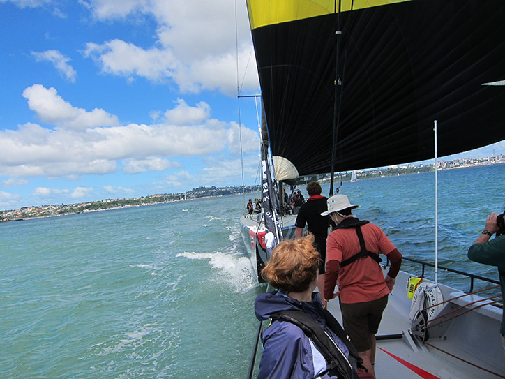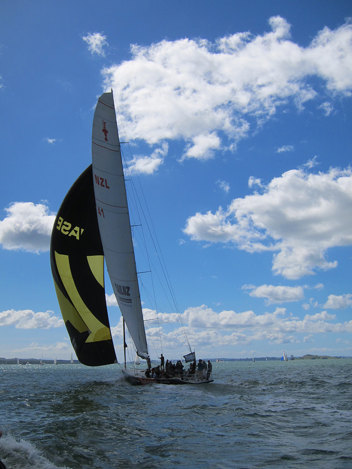 On the second lap fate smiled on us and as the opposition went to put up their downwind weapon they tangled it. They had knotted the sail when they put it away in the hold in the previous upwind segment.