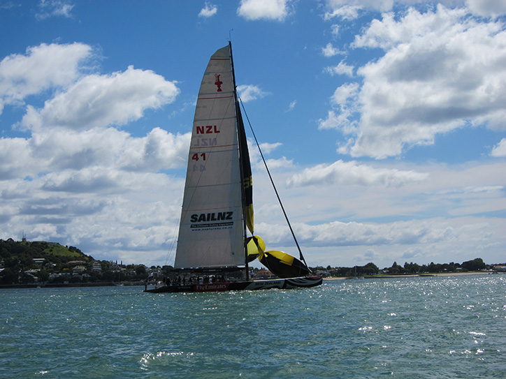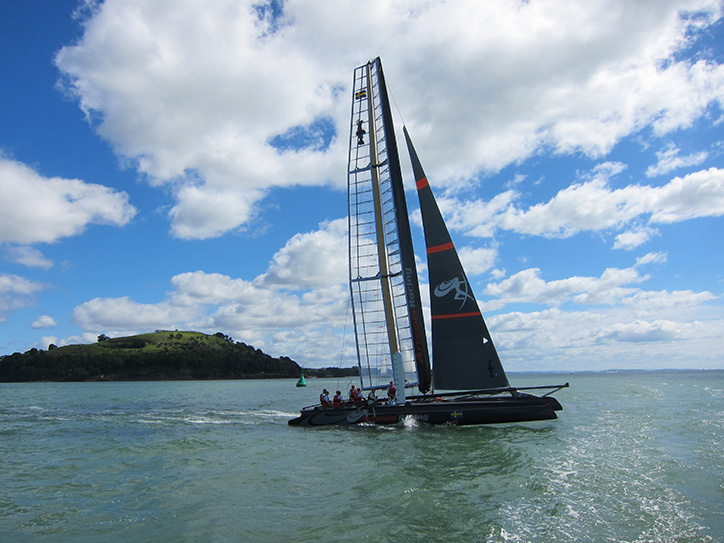 On our way down the course we ran into the real team racers practicing for the 2013 America's Cup in the new boats named AC72, a wing-sailed catamaran. Designed for even more speed, and use a hard sail like the wing of a plane.