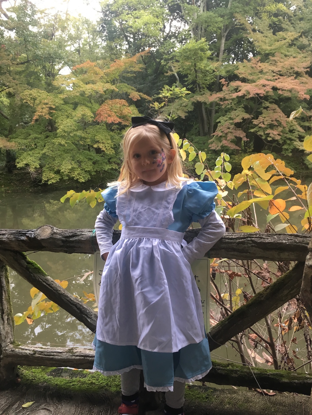 It took me a while to come up with the perfect costume but in the end I decided on Alice in Wonderland because that's what Transportation is reading to me at night right now.