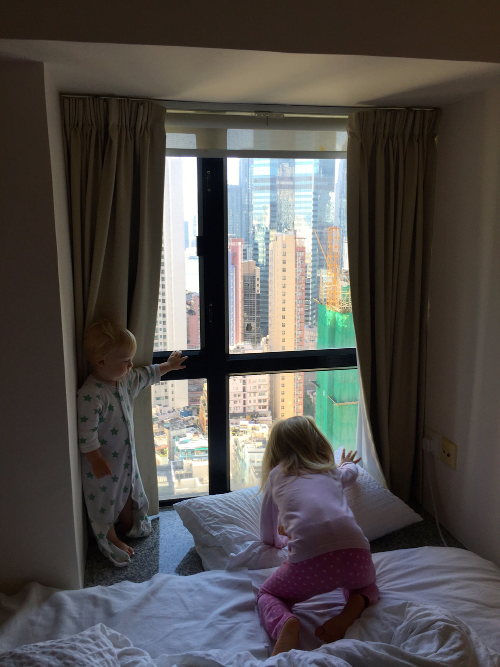 And just like that poof we're in Hong Kong. The flight went a lot smoother than the authorities had anticipated (always pays to expect the worst) and our first day in the city went off without too many tantrums from either side. But the heat, oh my Lord, the heat is incredible. Together with the humidity it hit us like a brick wall over our jet-lagged heads.