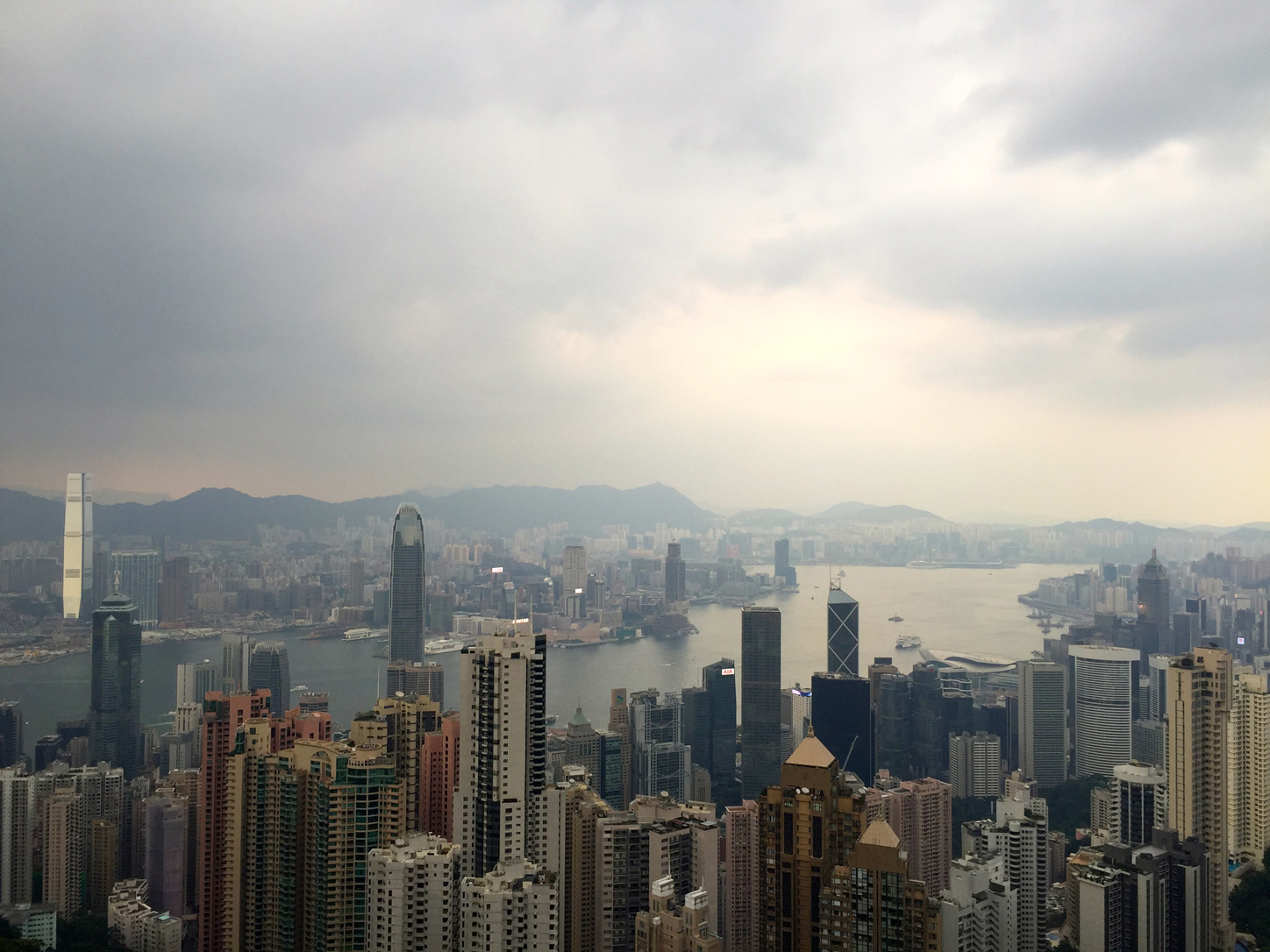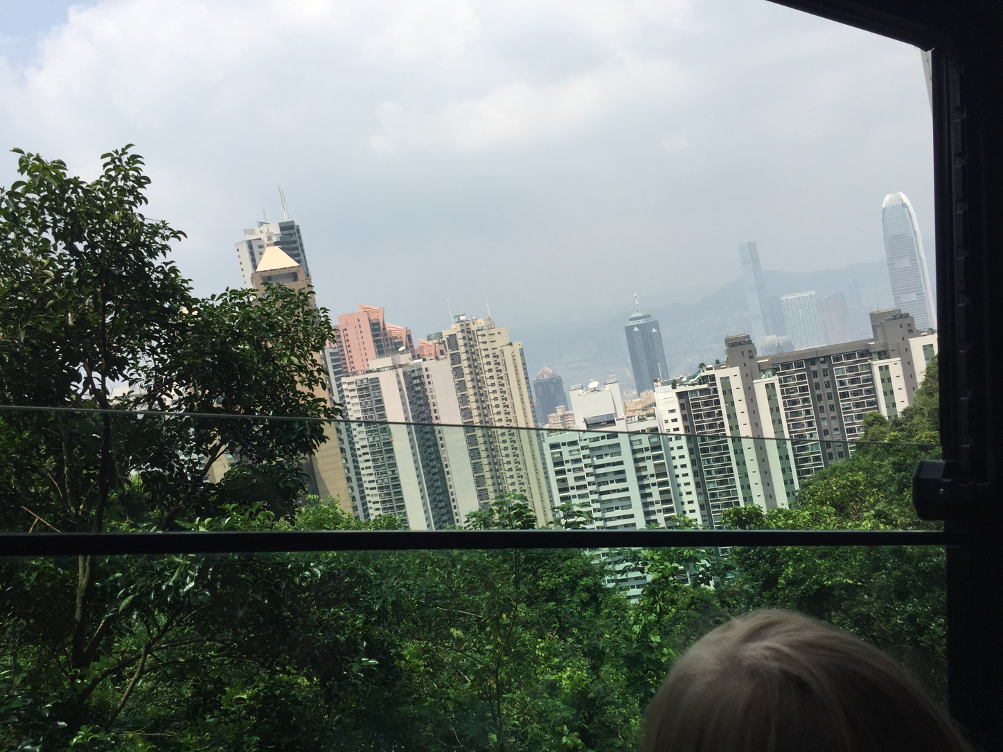 The next day it was sunny so we started with the most famous attraction of them all, Victoria Peak. It's a mountain on Hong Kong island that gives you a great view of the whole area. After you stand in line for about 100 hours, you ride up in a super-steep cable car.