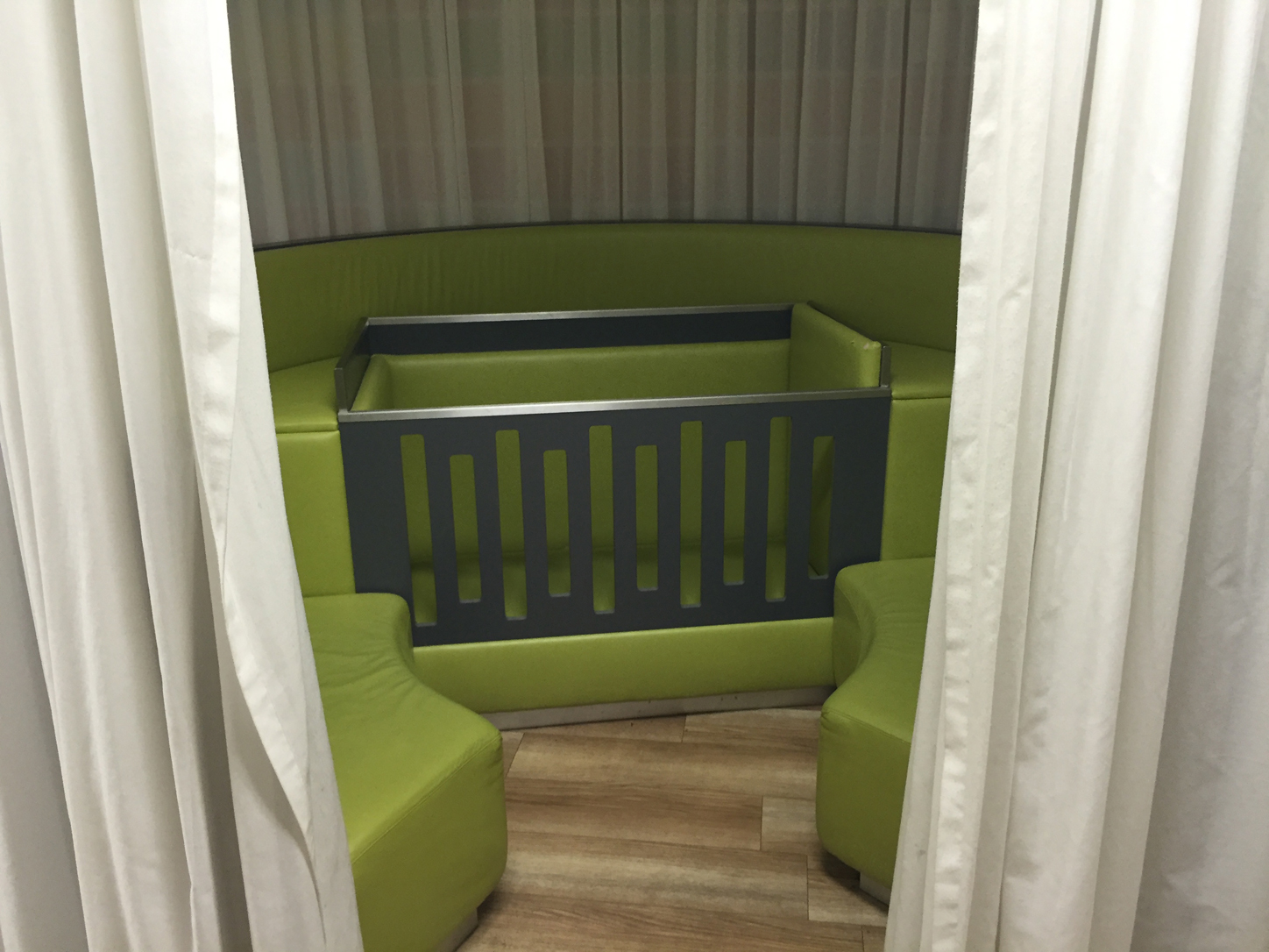 The Dutch sure know how to make families welcome - a baby room with lots of cribs, separated by curtains. Either for breastfeeding or letting the baby sleep or even just play quietly wile the parents repack their duty free spoils.