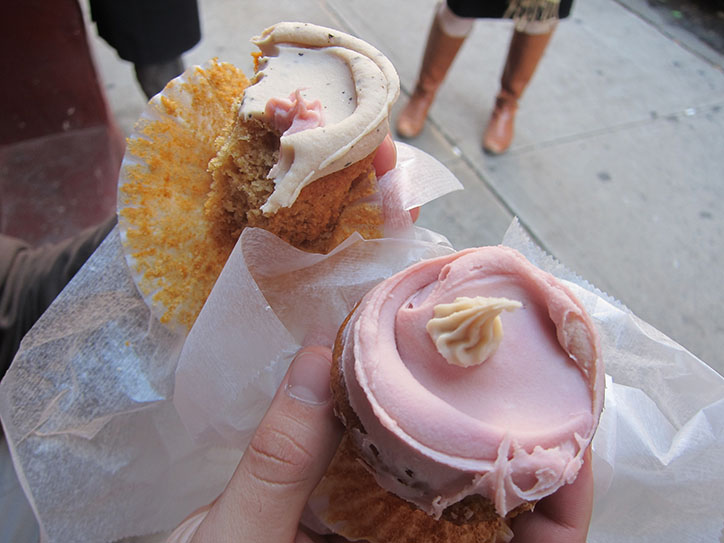 Magnolia's cupcakes are decent enough and they have the best packaging for giving them as a gift but they are not the most delicious. Their fame is more attributed to their baking book then to their actual baking. The frosting is too abundant and sweet, overpowering the actually perfectly baked cupcake batter. Billy's Bakery also suffers from the same mountains of frosting and sweetness and the cupcakes themselves are not nearly as moist. In fact it takes a dedicated connoisseur to tell that Billy's is not Magnolia, they even finish the frosting topping in the same swirly motion leaving a spatula hole in the middle. Both are a chain by now and have several locations but both can most easily be visited on foot in the West Village.