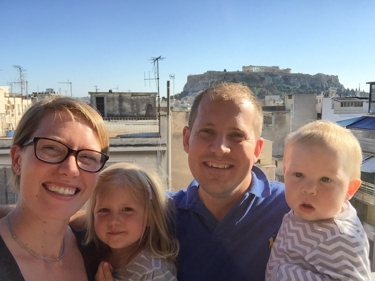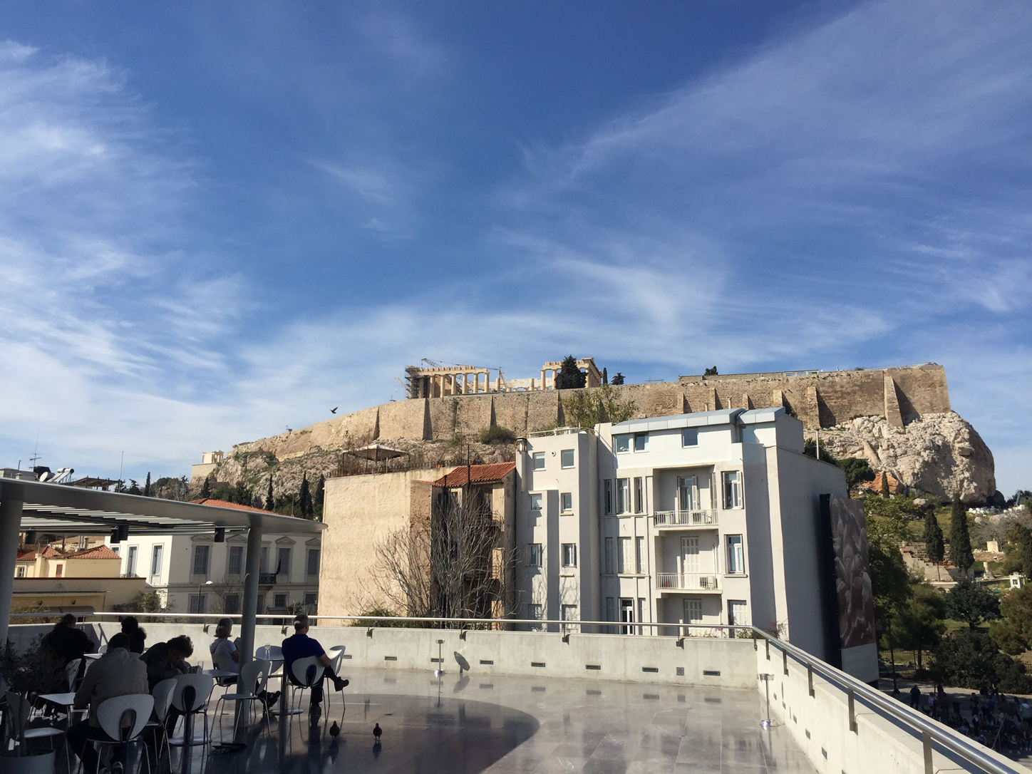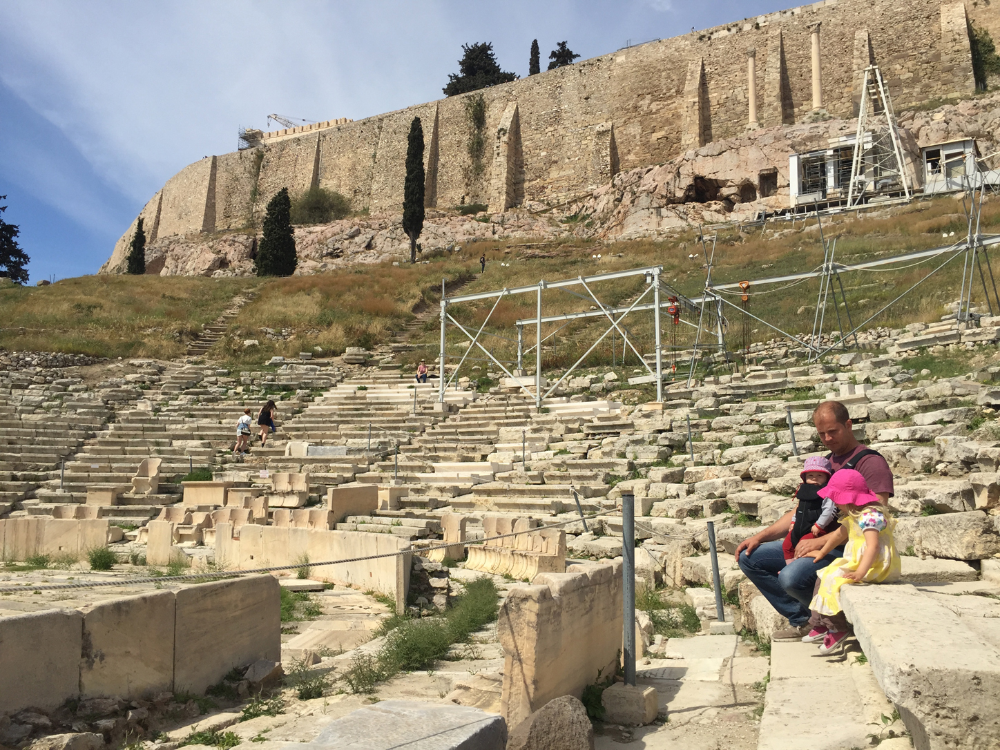 Because we were going to spend just a few days in the city and the main reason for our stay was to visit the Acropolis, the authorities picked the place with the possibly best view in the whole of Athens for us to stay. That's us on our balcony: