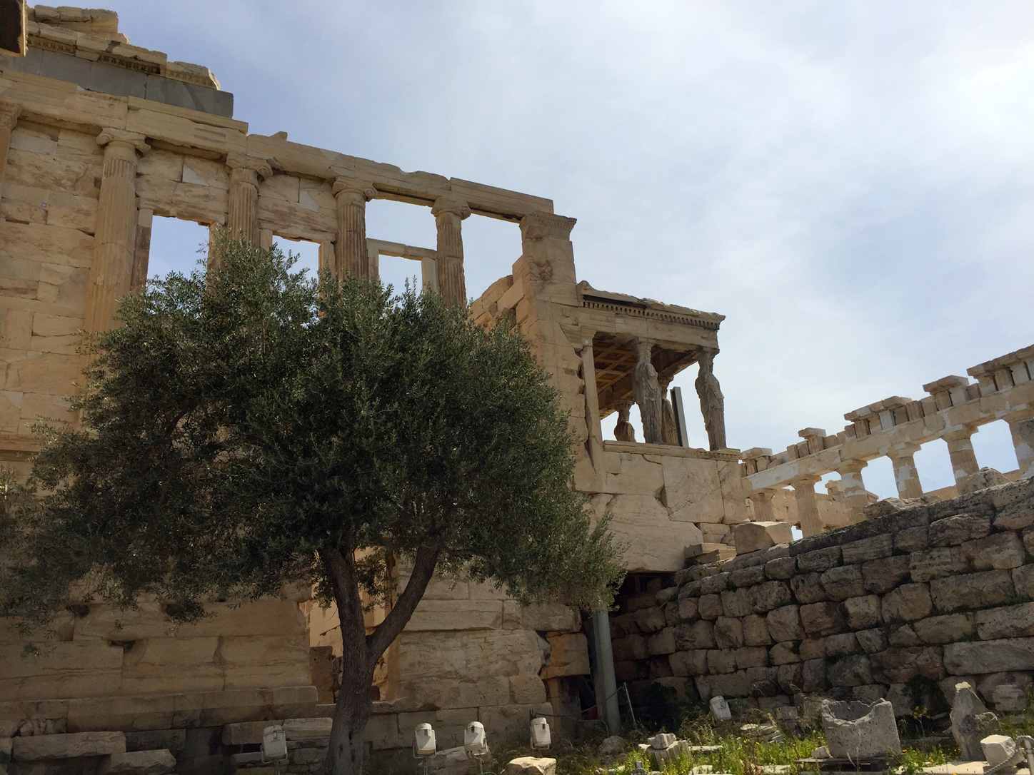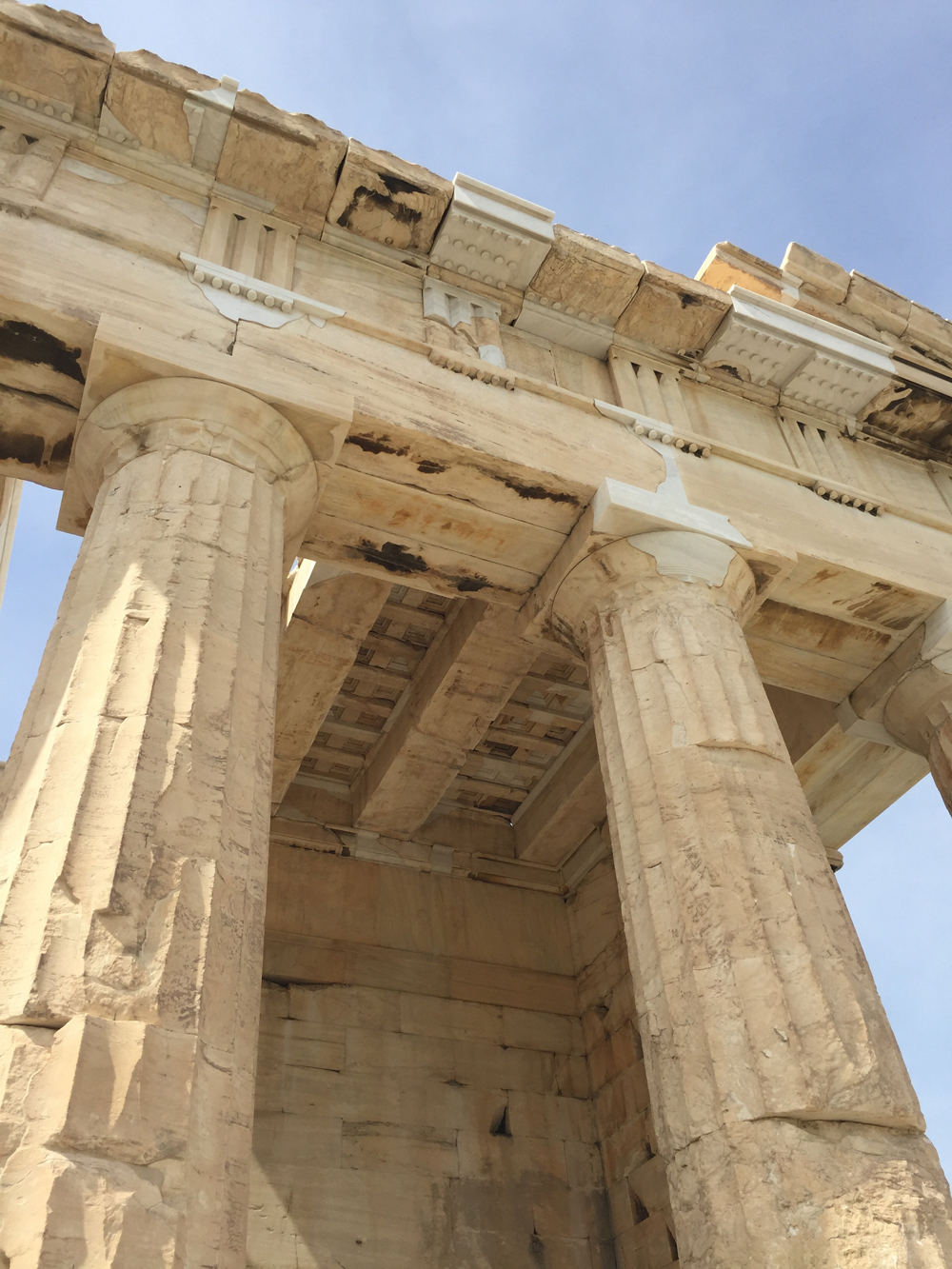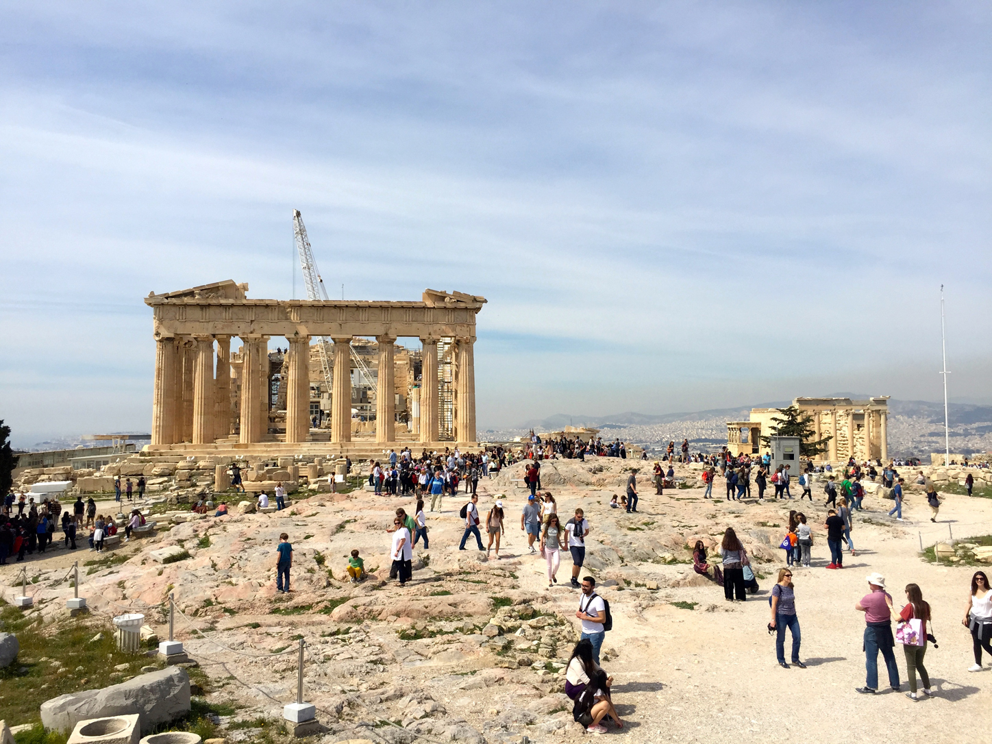 The crane in the middle of the Parthenon is there for the rebuilding efforts. They plan to put the whole thing together again the way it looked originally, or at some point at least (it's gone through quite a few changes in its centuries of existence). I think it's kinda neat to see where the new pieces have been fitted.