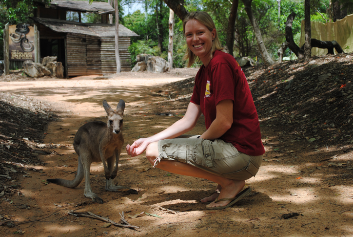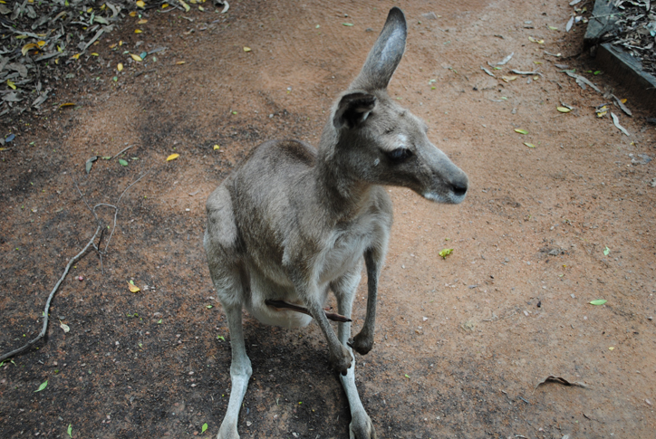 If you're ever looking for some good entertainment in this part of the world, you could do worse than the Billabong Sanctuary. We arrived just in time for the morning round of animal shows and over the next 2½ hours we learned more about koalas, wombats, snakes, lizards and salt-water crocodiles than we could ever have hoped or wanted to. Did you know that wombats have a thick plate of cartilage in their backside which they use to barricade the entrance of their burrow when they feel threatened? Butt armor, what a brilliant idea. Or did you know that crocodiles are 'opportunistic eaters' meaning even if they've just eaten a whole cow and are bursting at every seam, they will still take a nibble out of you if you happen to splash by. Also interesting but rather sad: the natural death of Koalas in the wild is starvation because their teeth become too worn down and they can't grind the eucalyptus leaves any longer so they die of hunger. :(