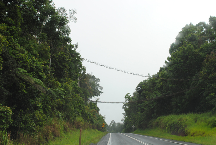 Our drive down from Cairns to the Whitsunday Islands was rather uneventful and punctuated, literally, by torrential rains. I suppose it's foolish to travel through an area classified as tropical rainforest and expect it to be dry and sunny. But the wet season wasn't supposed to begin until early December and yet we've been pounded by rainstorms pretty much every day since our arrival in mid-November. The rain doesn't just drip from the sky, it drives down with a vengeance as if it had some personal business to take care off with this state. At several points we were ready to pull over onto the side of the road because our wipers couldn't swish back and forth fast enough to clear all the water being hurled down from the dark-grey sky hanging not more than three meters above us. Still, we got some lovely pictures from the inside of the car: