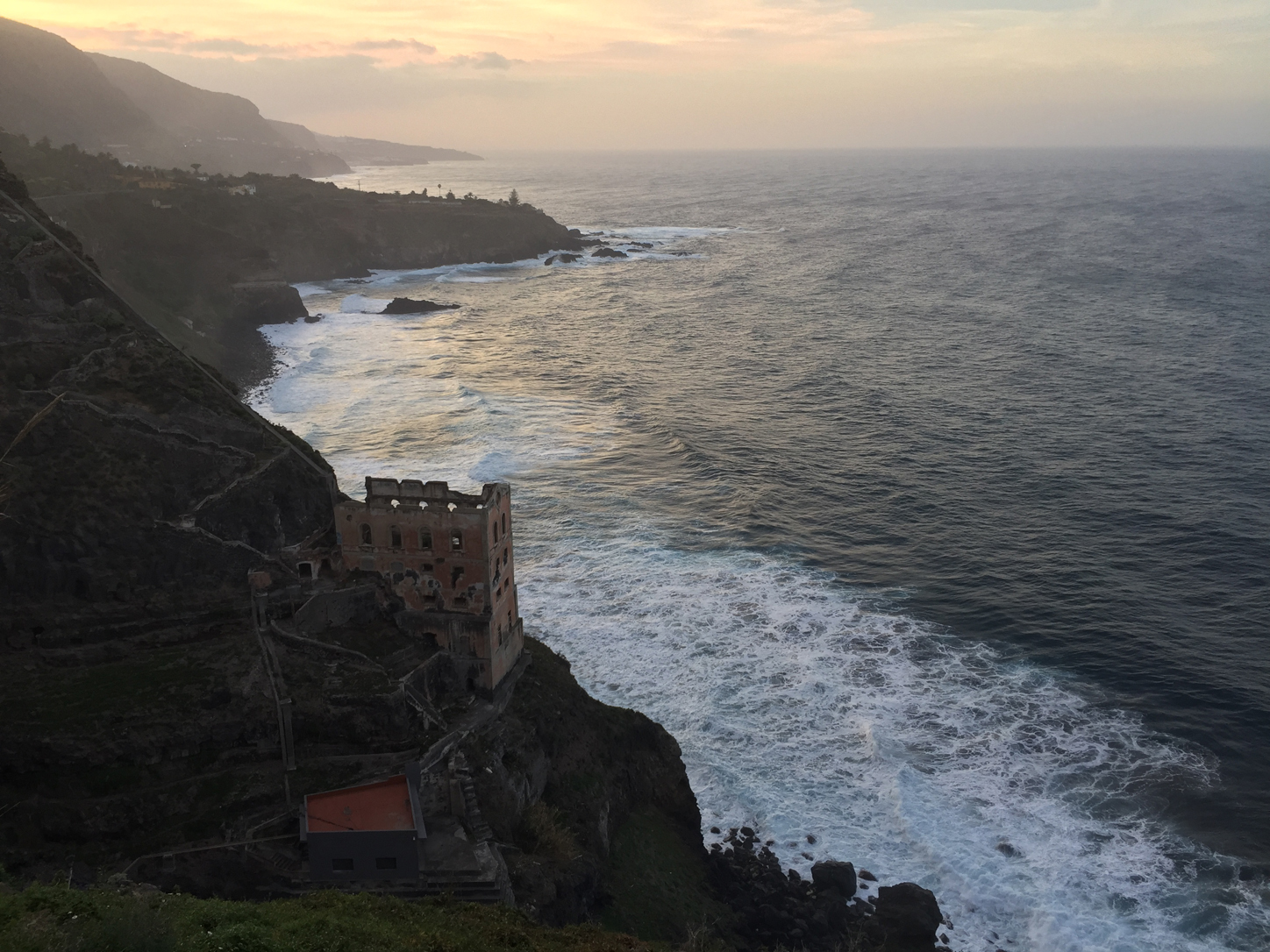 Our place is really close to the water so we can watch the waves smash against the rocks and see the sun go down. Very pretty. Also, there's a ruin of a big house under us that Transportation insists on calling a castle but I'm going to say uhm, no.