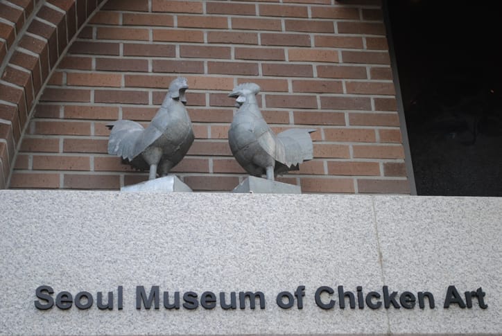 Bukchon is also where the inspiring "Museum of Chicken Art" is located. After seeing it on a map we tried to decide whether it would be a museum about chickens or exhibited art done by chickens or if 'chicken' was simply a really bad translation error so of course we had to go and find out. Turns out it's simply a museum about chickens in all shapes and forms - oil paintings, drawings, sculptures, etc. Bit of a let down really, I was hoping for some art done by chickens.
