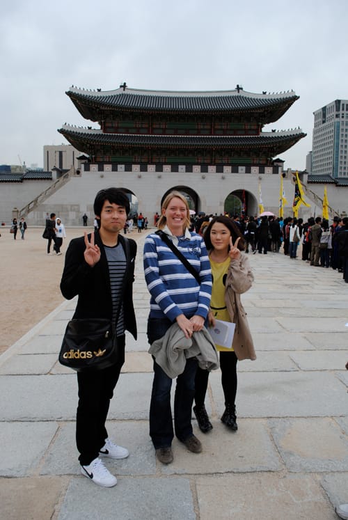 Speaking of white devil - photos with us are very sought after! We've had several different groups of teenagers approach us all over Seoul asking if they could take our picture. I feel like a celebrity! Next thing you know they want our autographs and ask where in the world I got such beautiful silky hair… POP (that was my dream bubble bursting) Actually they probably think we look like freaks who are gigantically tall and they have to record us for posterity because otherwise their friends would never believe them. Here's one of those encounters: