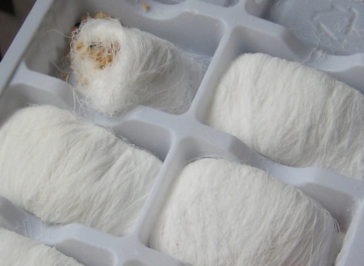 Another fun food we picked up on the street was a sweet, which used to be prepared for the king and his royal entourage. There are stands making and selling it all over the city. The name was something like Kkuturae but don't quote me on that. They look like little silk worm cocoons and when you first put them in your mouth the feeling is distinctly 'hairy' but not all unpleasant. The silky outside is made of spun honey and icing sugar (or possibly flour? It wasn't too sweet...) which dissolves quickly and you're left with a gooey, sticky paste of peanuts, walnuts or almonds. (We tried the peanut variety.) The stands where these cocoons are made are usually manned by two or three guys, working with their hands in a little hill of icing sugar, kneeding the dough while chanting and talking. (Or telling dirty jokes? We never found out.) Whatever they're saying must be funny though because there are always throngs of people standing before the carts, giggling and 'oohing' and 'aahing'. It's true that it is slight hypnotic watching the guys kneed the dough, pull it apart into hundreds of tiny little strings, push it back together, kneed it some more, add more sugar, pull the strands apart again and so on until a crucial moment when the dough is ready (or they run out of jokes?) and they start breaking the strands into smaller pieces, press a bit of nutty goo into it and roll it into a little cocoon.