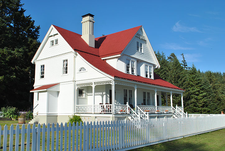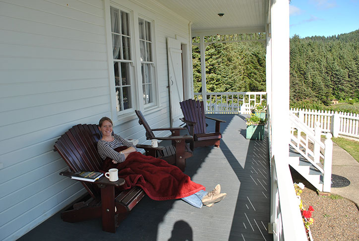 After all that snow we decided to ditch the mountains and head to the sea instead. We stopped by Vancouver (WA not BC) for a few days to stay with friends (thanks Jeanette & Phil!) and then hit the 101 going south. Last night we slept in an old lighthouse keeper's cottage which has been redone as a bed & breakfast. It's a very cute place although in the winter when the sun doesn't come up for 30 days, cute is probably not the word most people would use to describe it. But in the middle of summer the place will charm the pants off anyone: