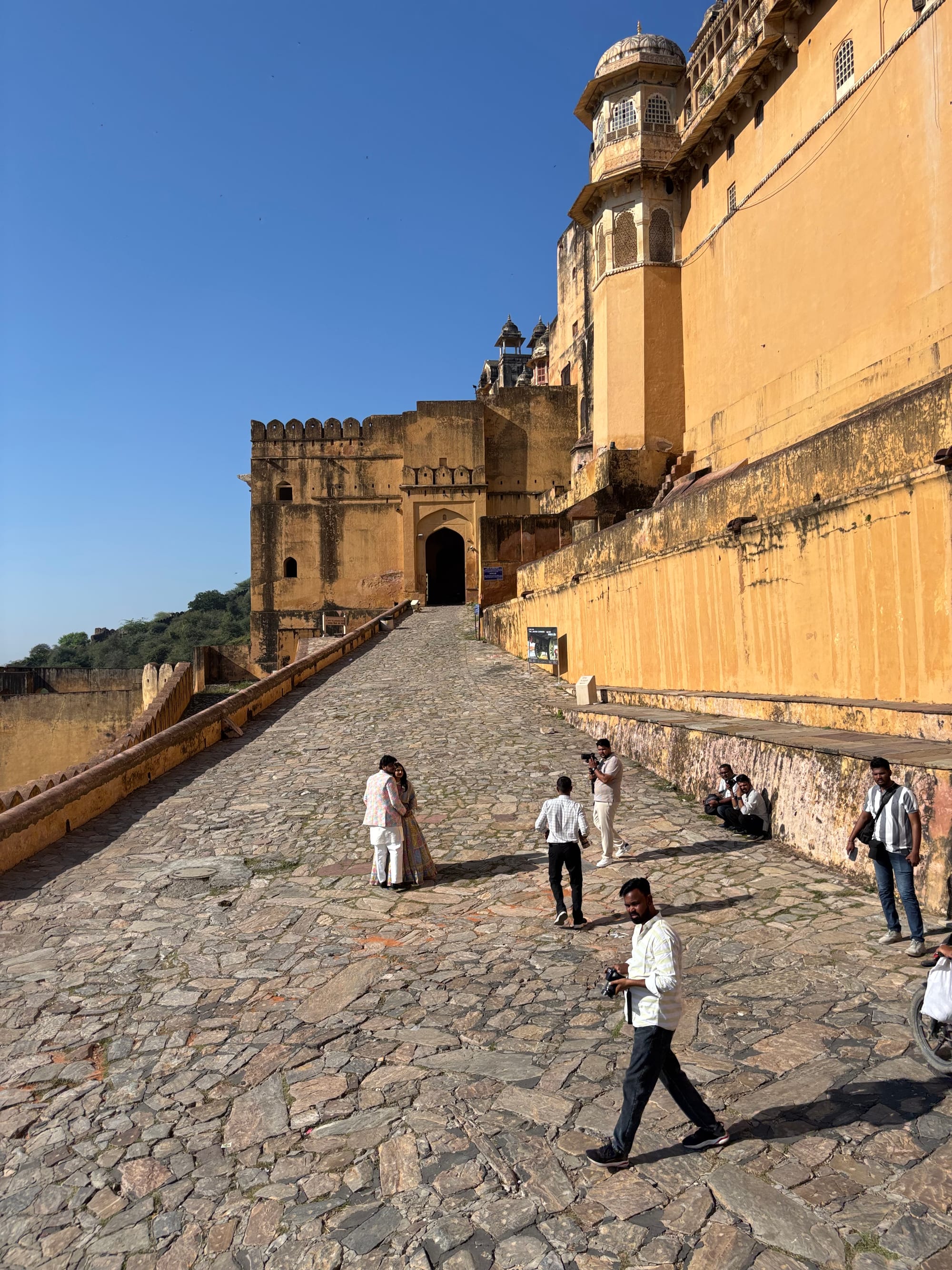 The fort was one of the maharaja’s palaces before they moved to Jaipur. It’s strategically located on a hilltop with a long defensive wall surrounding the area. Nowadays it’s a major attraction for locals and tourists alike and since we were there on Sunday the place was teeming with couples doing engagement photo shoots.