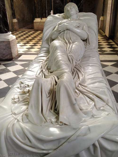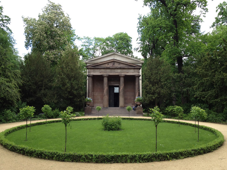 In the backyard (i.e. a giant park originally landscaped as a French baroque garden but over the years turned into an English garden meaning more trees, less geometry) there are several smaller structures such as the Bellevue, a little teahouse in which a family of six could comfortable live nowadays and the mausoleum where Queen Louise, her husband King William, Empress Augusta and her husband emperor William I. are interred. The sculptures placed on their graves are incredibly detailed and beautifully done: