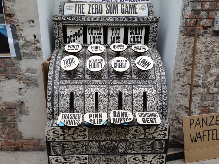 Yesterday after brunch we wandered a bit through our neighbourhood and came across an art installation from the Occupy movement Berlin (remember New York City?) that's somehow linked with the 7th Biennale currently going on here in the city. We couldn't quite figure out how the two were related but it was an interesting space in any case.